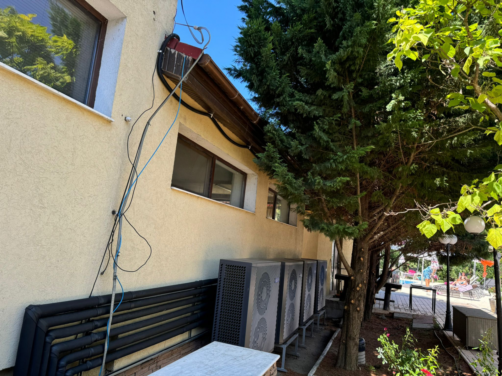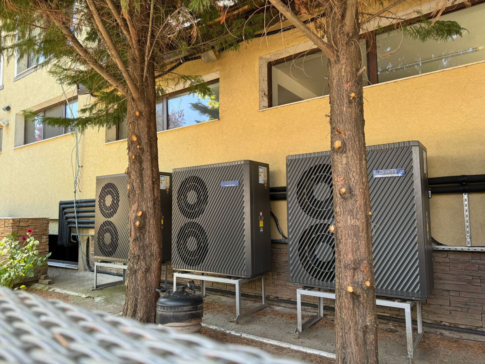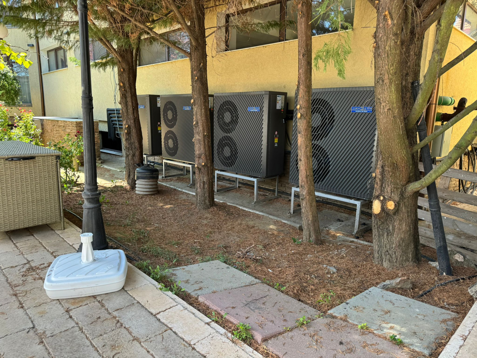 Am instalat un sistem modern de pompe de căldură cu R290 la pensiunea noastră. Aceste pompe, fiecare cu o capacitate de 22 kW, asigură atât răcirea pe timp de vară, cât și încălzirea iarna, atingând temperaturi de până la 75°C.